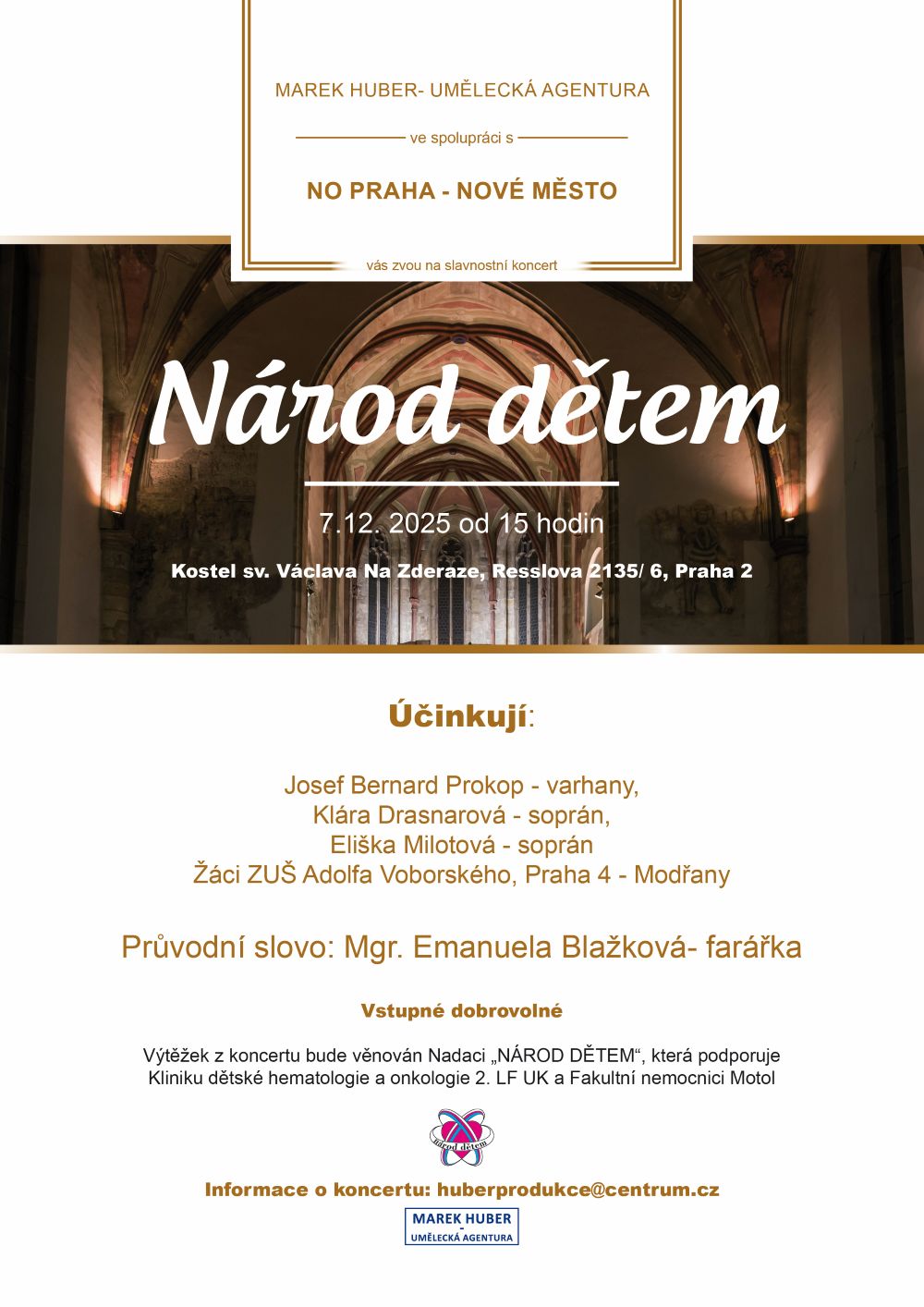 Benefiční koncert Národ dětem - Umělecká agentura Marek Huber ve spolupráci s NO Praha - Nové Město.